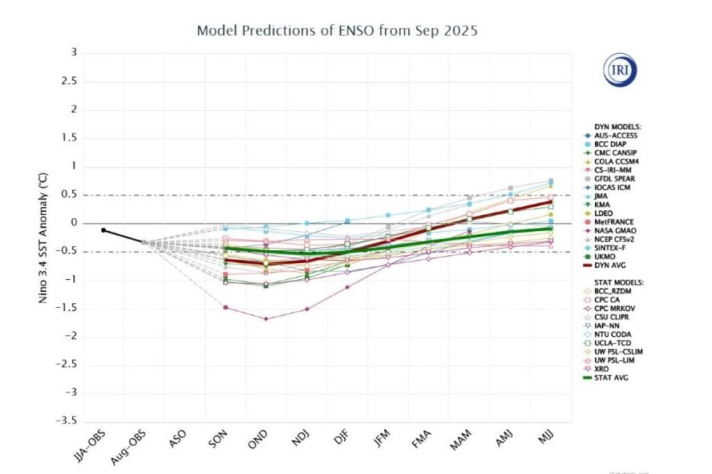 The image above shows the ENSO forecast based on guidance from various long range forecast models. Image courtesy of the National Weather Service.